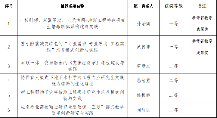 防灾科技学院2025年校级研究生教学成果奖及省级教学成果奖推荐名单