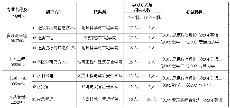 防灾科技学院2026年硕士研究生招生专业目录