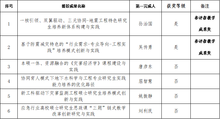 防灾科技学院2025年校级研究生教学成果奖及省级教学成果奖推荐名单
